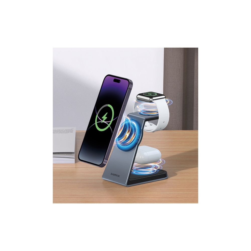 SUNIX MG-80 3-in-1 Wireless Şarj Standı 15W Hızlı Şarj