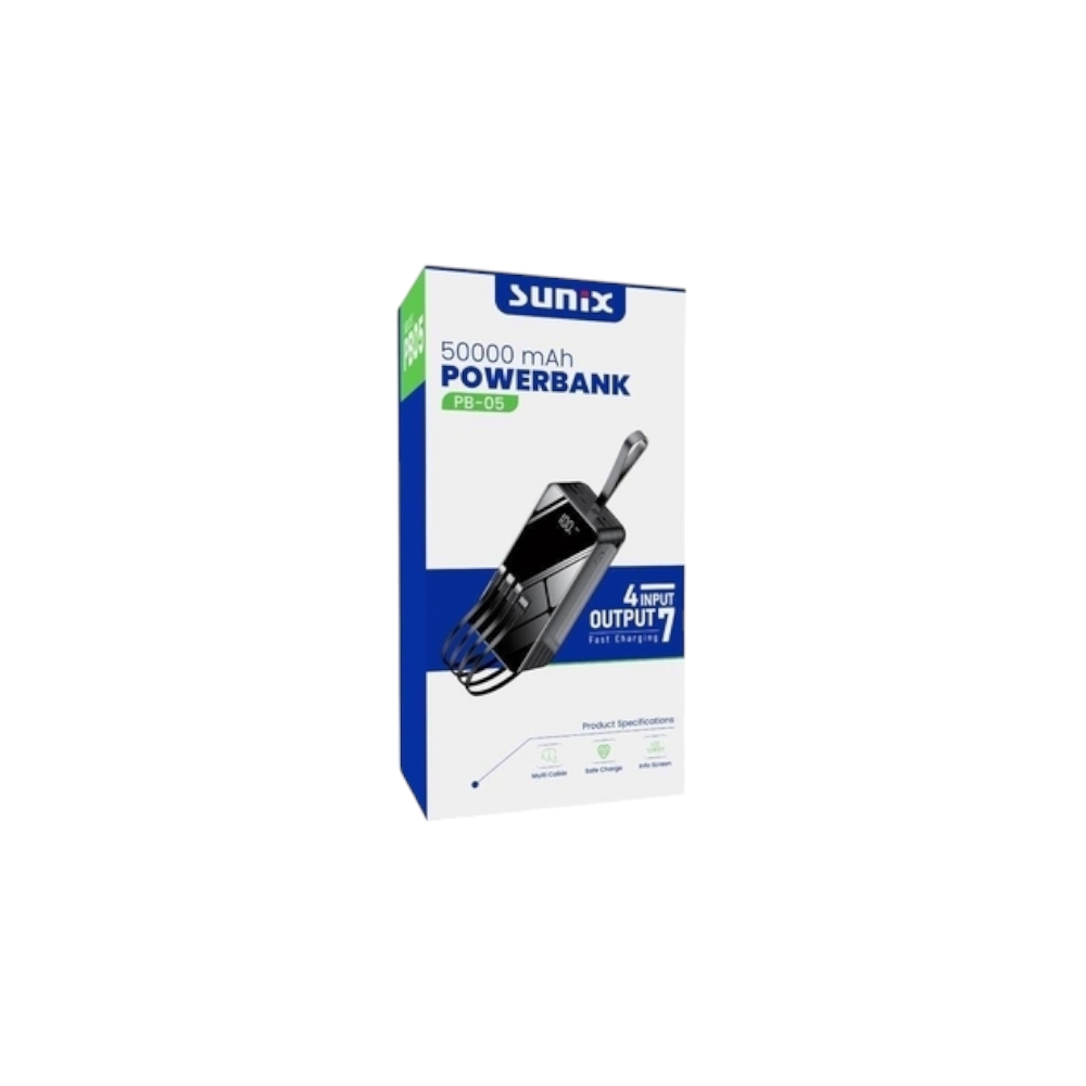 SUNİX PB 05 50000 mAh 36W LED Gösterge Powerbank, enerji ihtiyacını karşılamak için mükemmel bir seçenektir. Kullanıcı dostu tasarımı, geniş kapasitesi ve pratik özellikleri ile hayatınızı kolaylaştırmayı hedefler. Siz de bu enerji kaynağını tercih edin ve kesintisiz bir yaşamın tadını çıkarın.