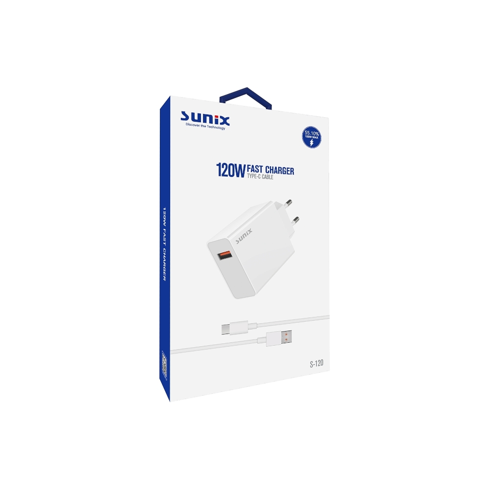 SUNİX S-120 Hızlı Şarj Type-C Kablo Turbo Şarj Seti